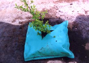 ユニット苗は、小型座布団状の袋に入った用土に種子を発芽させたもので、種子は景観や遺伝子レベルの種に配慮して現場付近から採取したものを用い、JHの緑化試験場で生育させたものです。