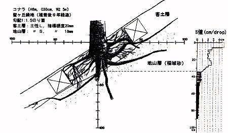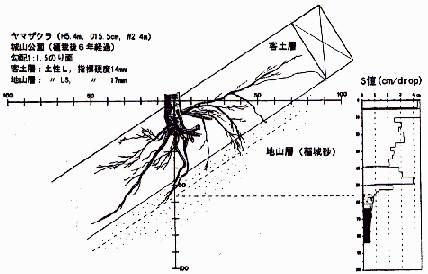 出典:のり面植栽木の根系発達と土の硬さについて
